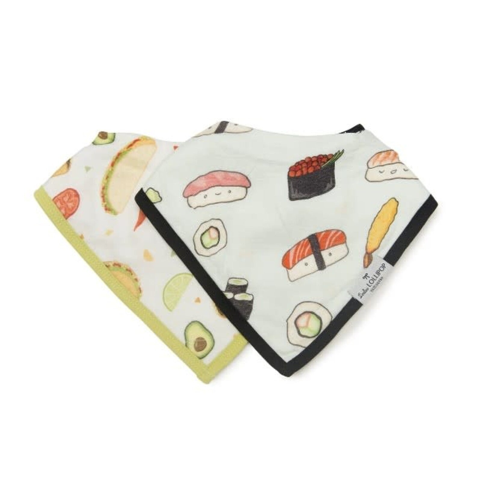 LouLou Lollipop | Muslin Bandana Bib Set (2-Pack) | Sushi/Taco