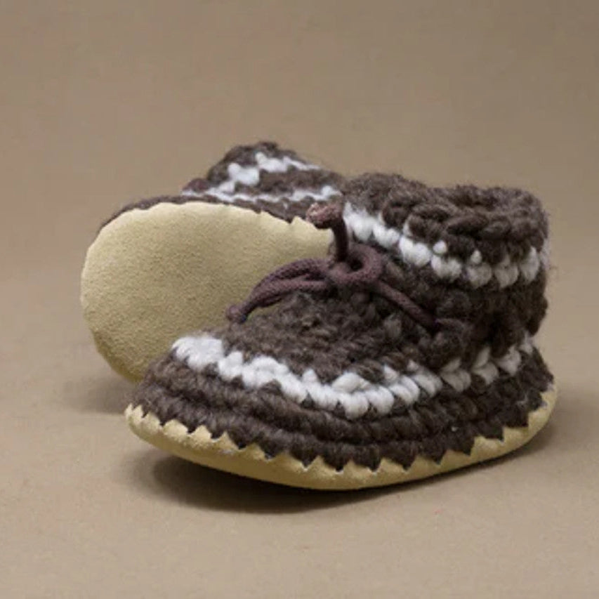 Keep little toes snug and stylish with Padraig Cottage Slippers, beautifully handmade in Canada. Crafted from soft, breathable wool with a sheepskin-lined sole and non-slip leather bottom, these slippers are designed for comfort, durability, and warmth. Each pair is lovingly crocheted by hand, making them truly one-of-a-kind.