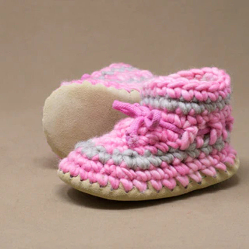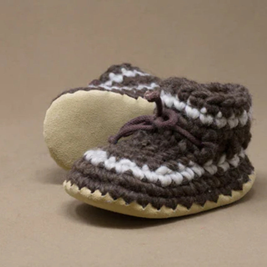 Keep tiny toes warm and cozy with the Padraig Cottage Newborn Slippers. Handmade in Canada, these slippers are crafted from soft wool with a sheepskin lining and durable leather soles. Naturally breathable and gentle on delicate skin, they’re perfect for keeping little feet snug from day one.